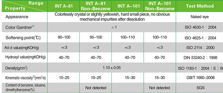 INT A81 Non-Benzene and INT A101 NonBenzene especially applicable for environment-friendly coatings/oil ink formulas thanks to their being free of benzene, toluene and xylene.