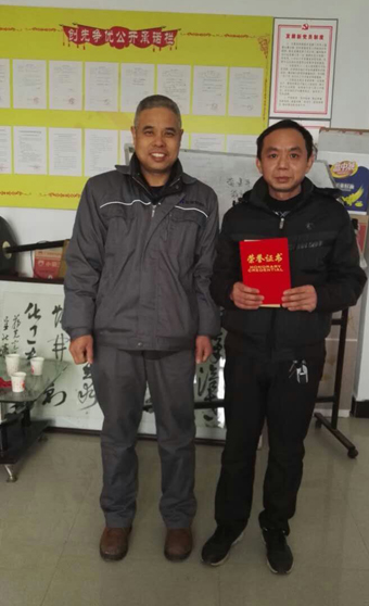 圖三:生產(chǎn)部經(jīng)理張建華與優(yōu)秀員工張治河的合影。