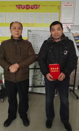 圖二:車(chē)間主任呂永冬與優(yōu)秀員工翁新寶的合影。